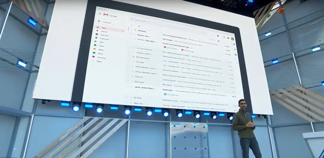 GMail 邮箱除了在 UI 设计上有着新版改变外,同样也加入了 AI 技术,用户在编写邮件时 AI 会对即将输入的内容进行预判。