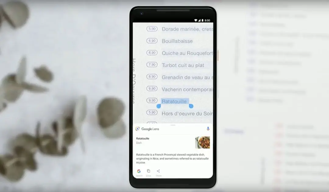 在识别文本后对内容进行复制、粘贴是 Google Lens 的基础功能。但在结合 AI 技术后,用户在扫面特定环境的单词后,可直接查看该物品的图像。