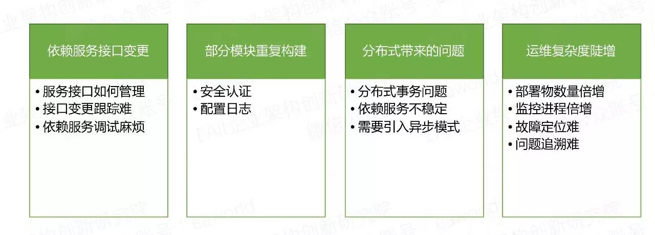 做到了前面讲的四个原则,那么就可以说是构建了一个微服务应用,感觉上也不复杂。但实际上微服务也不是个万金油,也是有利有弊的,接下来我们来看看引入微服务架构后带来的问题有哪些。