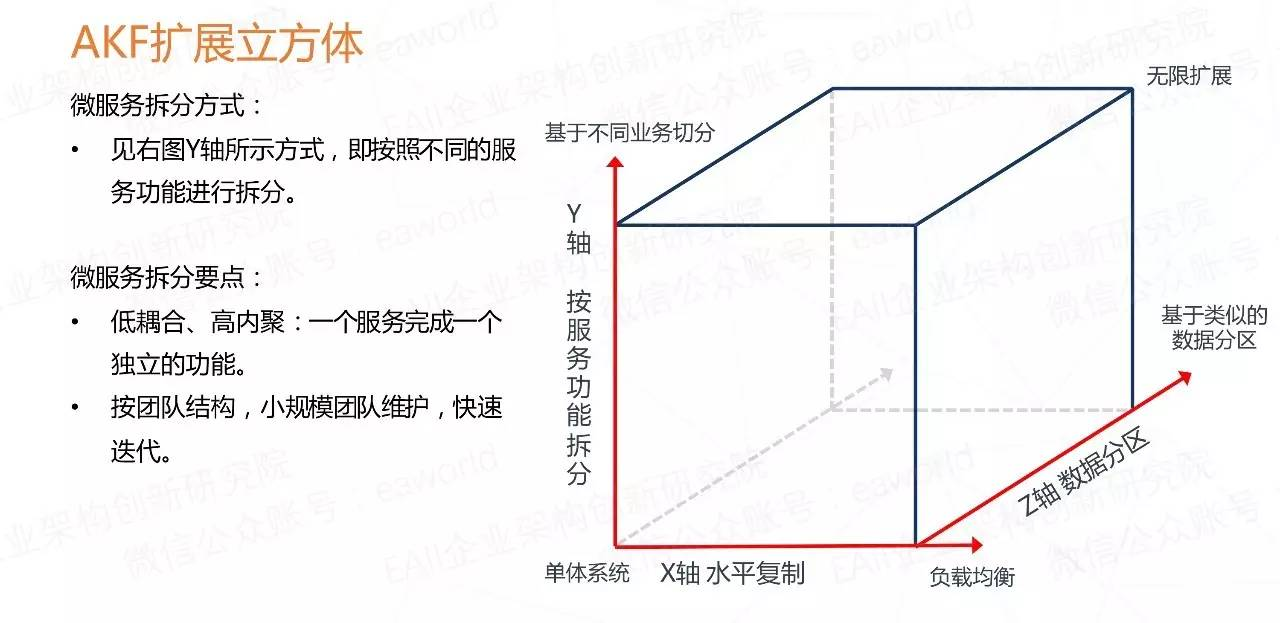 Y 轴 :就是我们所说的微服务的拆分模式,就是基于不同的业务拆分。