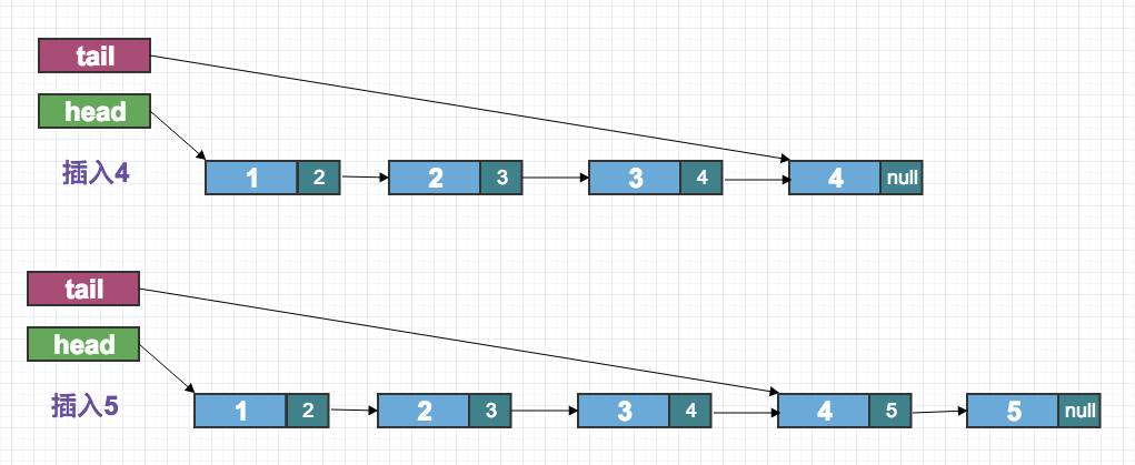 4、更新tail指针,一般指向最新尾节点.