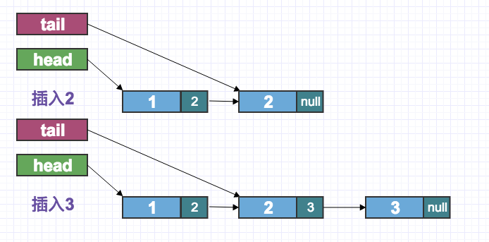 //添加尾节点的next节点,成功之后,更新tail的指针指向最新尾节点