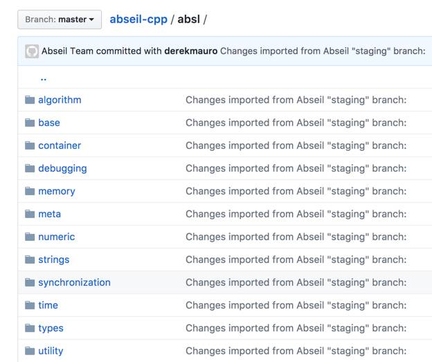 目前代码已经放在 GitHub 上:https://github.com/abseil/abseil-cpp ,基于 Apache 许可证开源。 我们也可以通过其目录大概猜测一下功能。