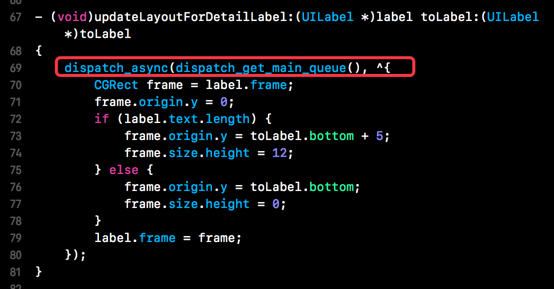 Masonry的诞生就是为了方便控件布局的,Frame布局不够灵活,适配起来比较繁琐,所以才有了AutoLayout。不过虽然AutoLayout可以很方便的适配屏幕,可是其性能方面表现的不是特别好。那么我们可不可以将两者进行结合呢。也就是说使用make来初始化控件的布局,使用Frame来更新布局。当然这一过程不是简单的在设置值的时候更新一下Frame就可以的,因为在Cell设置值的时候去更新Frame是没用的,因为更新完Frame后,在渲染显示的时候,还是会按照AutoLayout的布局来显示的。我们需要做的是将Frame布局放到Autolayout布局之后,此处我们要做的就是将更新Frame的相关代码放到下一个Runloop中来执行。更新Frame代码如下: