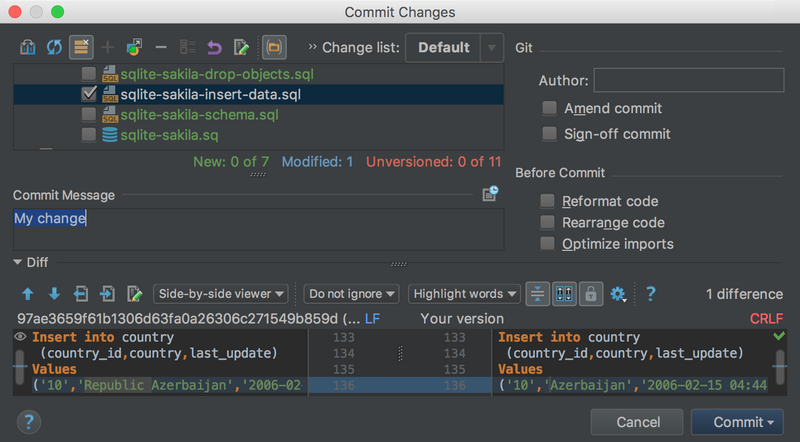 DataGrip为目前所有的主要版本控制系统提供统一的支持,如:Git,SVN,Mercurial等等。