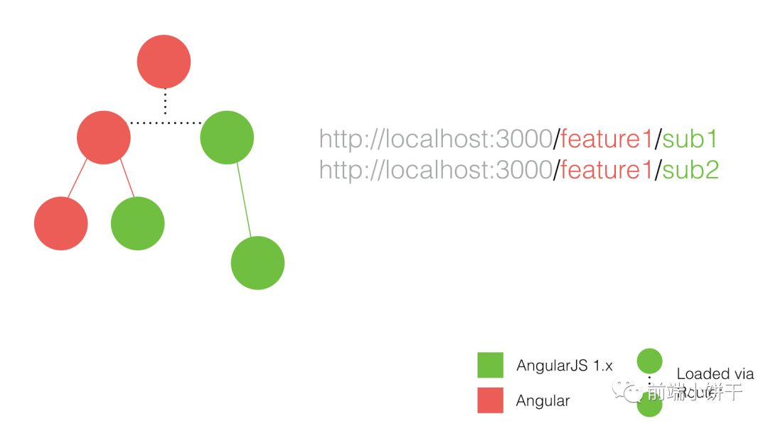 最后,当用户再导航到 /angularjs_a 时,Angular 路由器匹配到凹槽路由,而正在运行的 UI-router,将会匹配到相应的状态。此时我们没必要再去加载启动 AngularJS 应用,因为已经执行过一次。