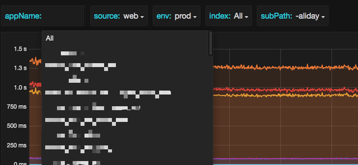 如果数值类型中出现了异常的值,例如平均为 1秒 的情况下出现了几百万秒的情况,那么就可以通过众多的过滤函数在界面上直接过滤掉而不是去修改打点代码,removeAboveValue(Query, 10000)即可