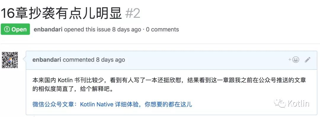 另外,我发现这事儿已经快两周了,上周在电子版的仓库中提了 Issue,可是这位仁兄并没有给出答复。