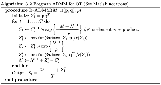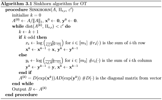 这里 是entropy function。[Cuturi, 2013]提出用Sinkhorn iteration来求解如上问题: