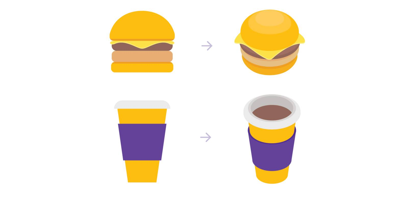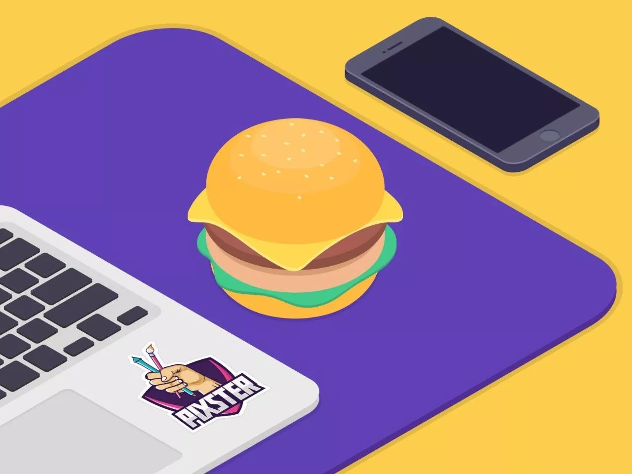保证每一个等距图的角度都是一样的,因此你所做的任何插图都可以无缝地融入到任何构图中去。例如,我可以简单地缩小等轴汉堡,并把它放在等轴测台上的笔记本电脑旁边。恩...它还蛮适合的😉