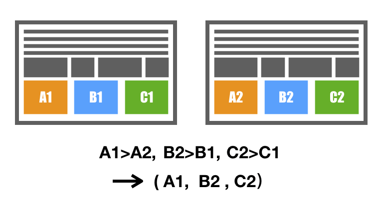 既然一个 A/B 测试实验只能有一个变量,我们就可以认为:一个业务流程上的有多少各地方进行了调整,那这个业务流程上就同时进行着对应数量的 A/B 测试实验。将这些产品流程上的每处策略调整都抽离成一个个独立的 A/B 测试实验,分别观察同一个整体指标的变化,能取出每个实验的最优方案。每个实验最优方案的组合,就是整个产品模块的最优解。