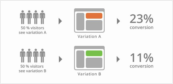 两套产品方案,分别让 50% 的用户各自访问不同的两个方案,观察谁的数据效果更好。