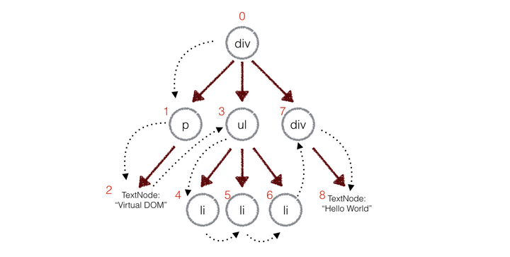 既然原来 DOM 树的信息都可以用 JavaScript 对象来表示,反过来,你就可以根据这个用 JavaScript 对象表示的树结构来构建一棵真正的DOM树。