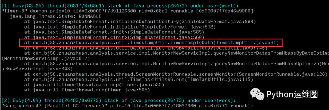 可得出结论:是系统中一个时间工具类方法的执行 cpu 占比较高,定位到具体方法后,查看代码逻辑是否存在性能问题。