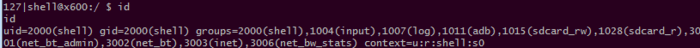 先看adb shell,我们先记住下面这个结论,后面会给出解释:adb shell 实际上是以“shell”这个uid启动shell进程adb shell xx 则是fork一个shell进程的子进程xx因此xx进程的uid、gid与shell的uid、gid一致:id=2000"id" 命令可以查看user信息: