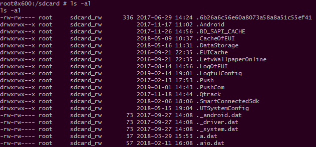 看到这个文件大家应该就明白了,我们可以看到每个permission都会对应一个group,里面的gid是不是很熟悉。没错,对于任何申请了这些权限的app来说,它的任何进程的gids都包含了对应的gid,因此才可以访问相应的文件。就拿我们最熟悉的android.permission.WRITE_MEDIA_STORAGE权限来说,我们看下sdcard目录的文件权限:
