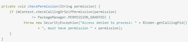 framework逻辑控制绝大部分的permission权限控制发生在framwork层,在ams pms wms 中你会遇到大量调用以下方法的地方: