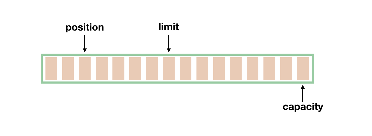 就像数组有数组容量,每次访问元素要指定下标,Buffer 中也有几个重要属性:position、limit、capacity。