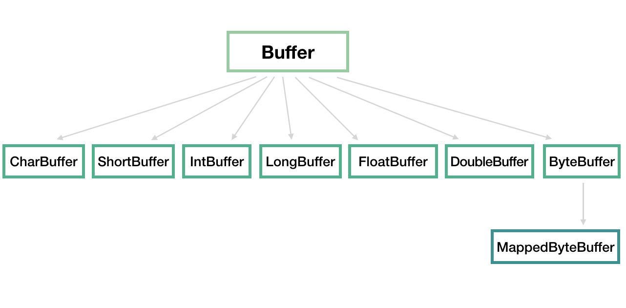 java.nio 定义了以下几个 Buffer 的实现,这个图读者应该也在不少地方见过了吧。