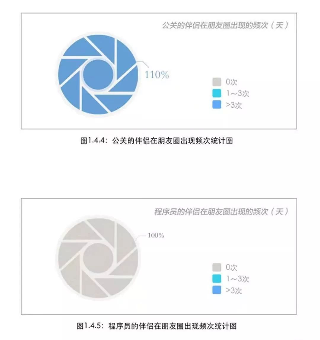 看到了吗?数据统计显示,有两个异常数据出现,一个是公关的,一个是程序员的,公关在朋友圈几乎是天天秀恩爱,还大于 3 次,程序员则是不秀恩爱,100% 不秀。