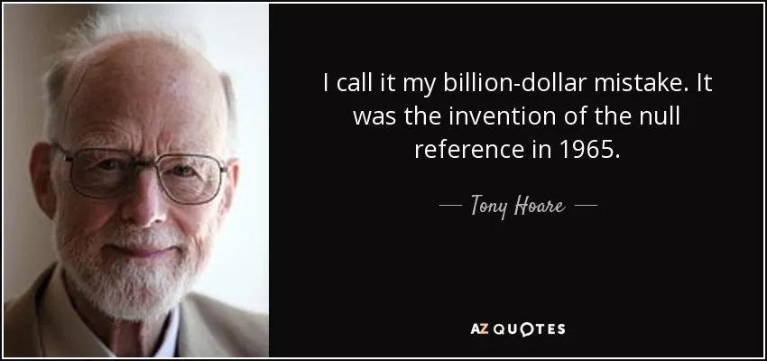 图灵奖得主Tony Hoare 曾经公开表达过null是一个糟糕的设计。