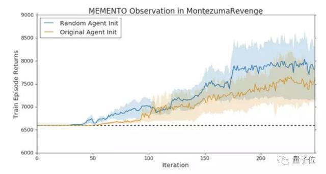 研究人员还发现,在他们提出的Memento observation中,在原始智能体遭遇瓶颈的时候,换上一只相同架构的智能体接着训练,就能取得新的突破。