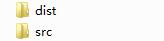 - 首先在项目中创建两个文件夹,一个叫src用来存放源文件,一个叫dist用来存放打包之后的项目文件