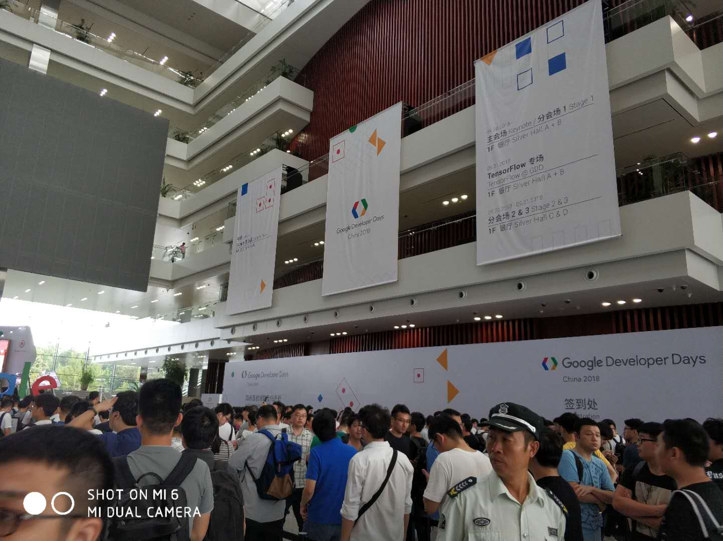 早上8点半来到世博中心,发现会展大门口已经排起了长长的队伍。看来大家都很兴奋啊,早早的就赶到了会场。看到大门里面的GoogleDeveloperDays的,整个人就感觉身为一个追随Google的开发者感到无比的自豪啊。下面放几张场馆的图。(ps:本人拍照水平有限,勿喷。。。)