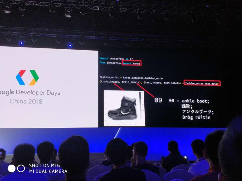 还有关于通过机器训练和学习,让机器识别靴子的示例。第二天会有TensorFlow的一整天专场。