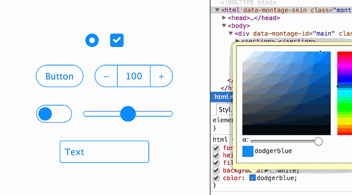 devtools and the color picker in the browser to change the value of the color property,