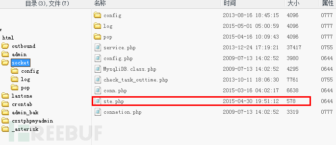 于是挂上菜刀,发现/var/www/html/socket/目录下的确实存在一个转发脚本,是4月30号刚上传上去的,可以看出来这人是通过比较老的THINKPHP漏洞拿到的webshell,如图: