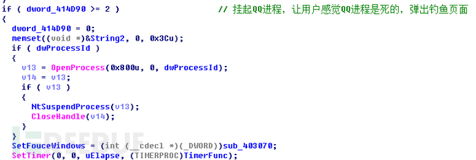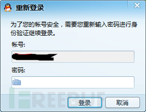通过NtSuspendProcess把QQ进程挂起,弹出钓鱼的界面,如图: