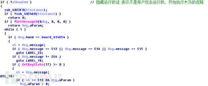 再次运行起来的木马,因为是隐藏运行的,所以会走下面的木马流程,如图: