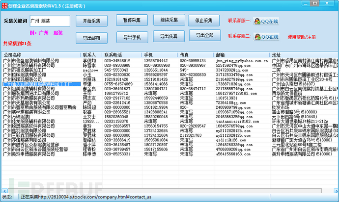 使用木马的诈骗者用的工具,从通过这个软件去采集信息,采集一些大企业的邮箱,通过邮箱群发工具把木马发出去: