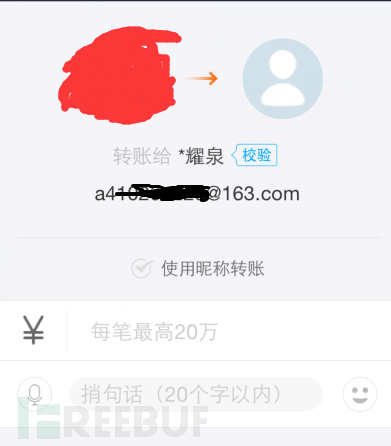 然后通过支付宝的转账功能看了下,果真有个163的邮箱: