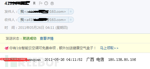 已发邮件里找到了2011年的邮件,发现他2011年在通过SMTP协议的木马盗取QQ帐号密码: