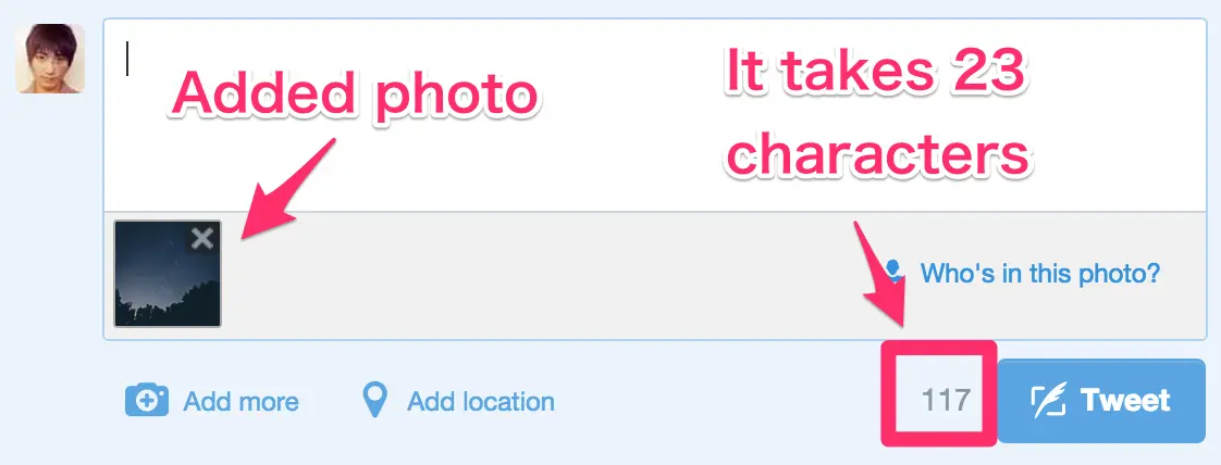 If the "Add Photo" button is ON then the character limit decreases by