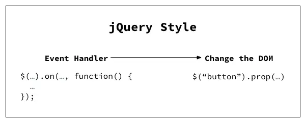- The difference between jQuery code v.s. React code, and