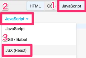 (the one without addons) from the dropdown and (2) select "JSX (React)"