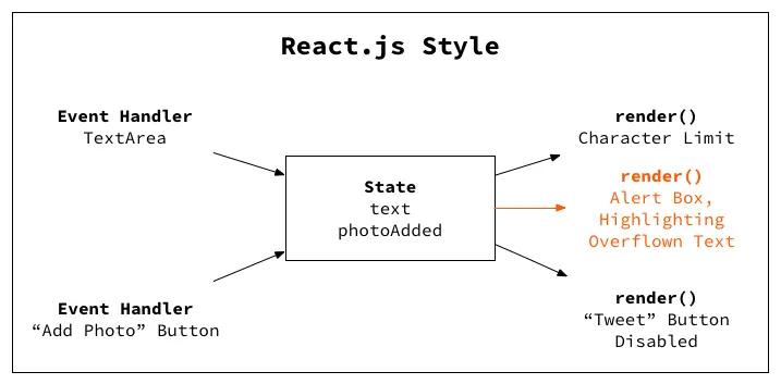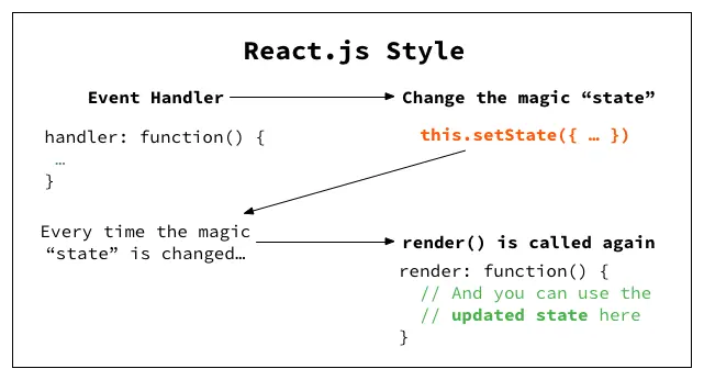 - Event handlers don't need to worry about which part of the DOM changes. They just need to set the state.