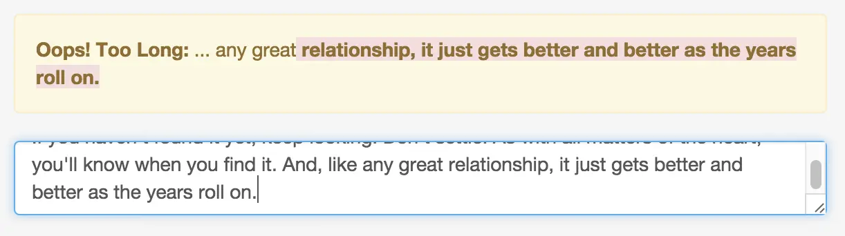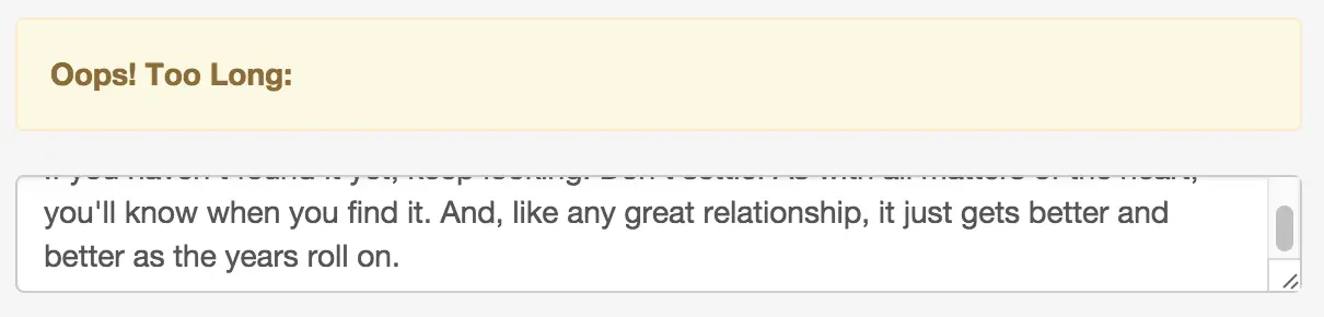 - Between "Oops! Too Long:" and the actual text, there's an empty single
