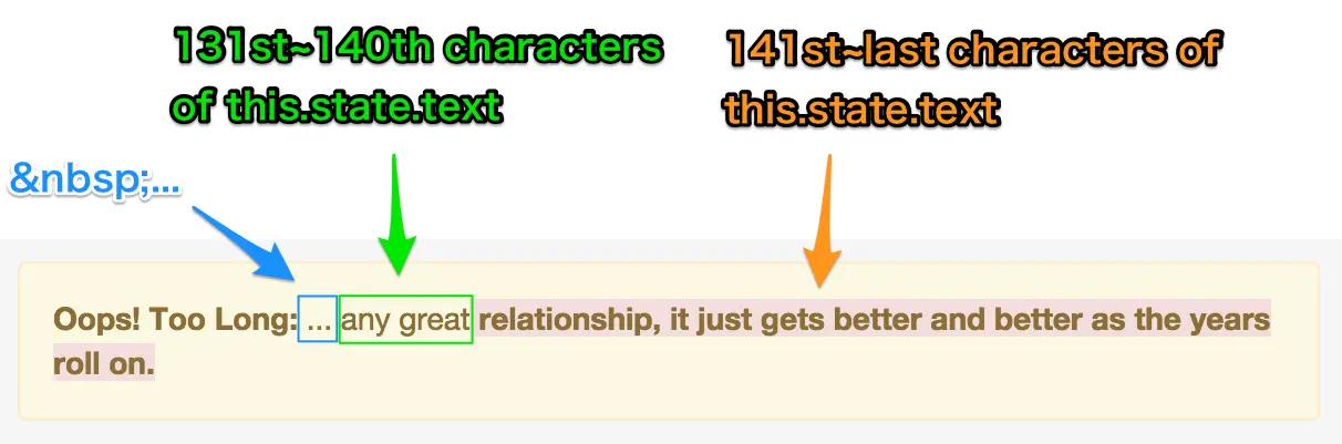 var overflowText = this.state.text.substring(140);
