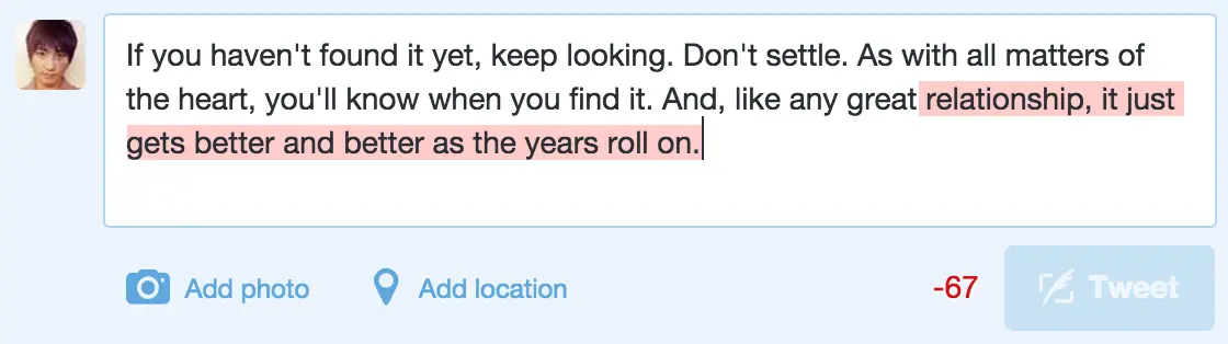 Unfortunately, we're not going to highlight the actual text inside the Tweet box,