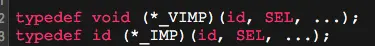 typedef id (*IMP)(id, SEL, ...);