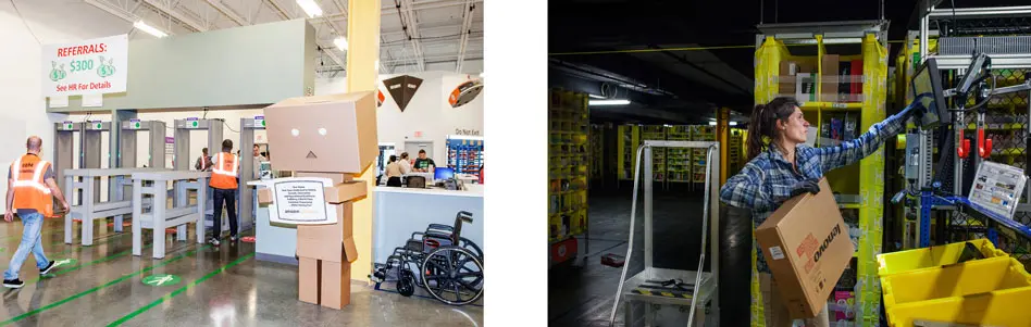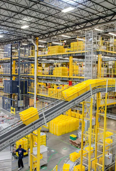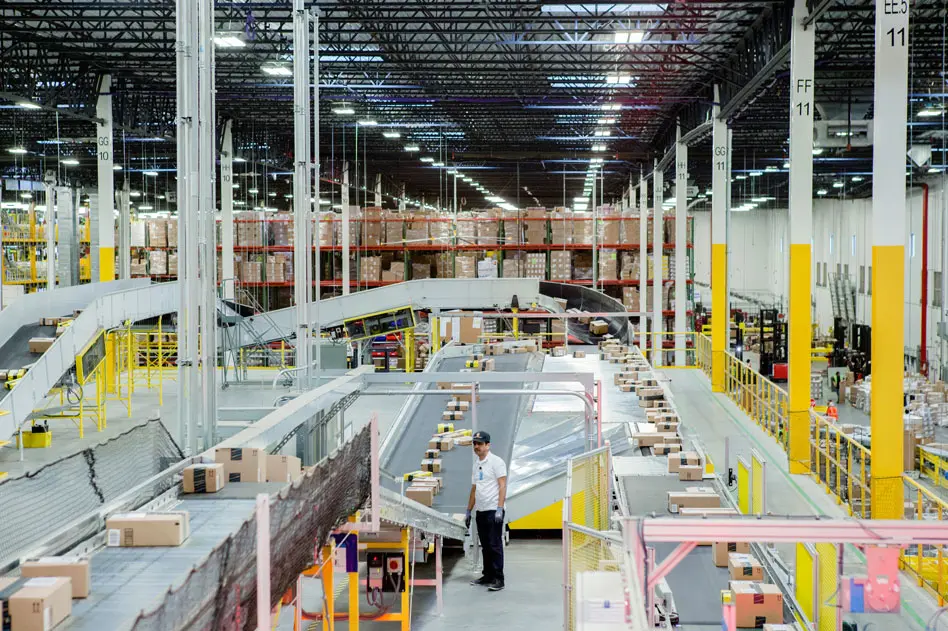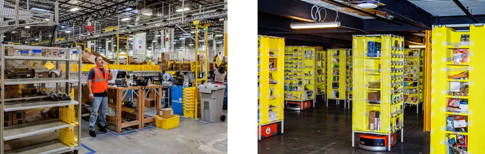 Some of the secrets behind Amazon’s phenomenal success as an online retailer can be discovered inside a million-square-foot warehouse that sits amid bucolic scenery in the town of Robbinsville, New Jersey. The building is one of Amazon’s most advanced fulfillment centers, and it houses technologies that allow the company to deliver products to customers at amazing speed. Goods are identified, sorted, and packaged with computer-assisted precision, while employees work in tight collaboration with the plant’s automated systems in shifts that run around the clock.