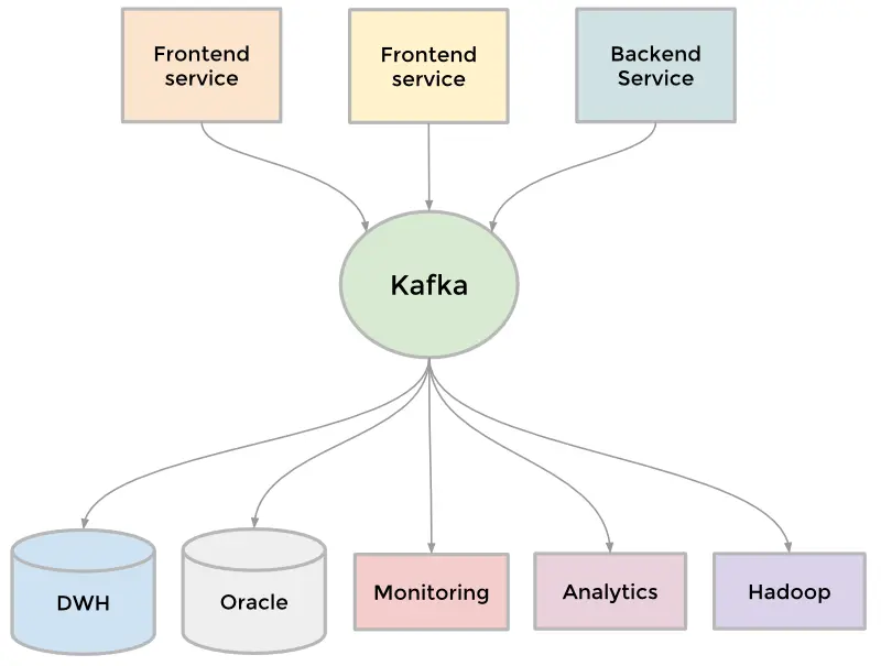 我们需要将数据放入数据仓库,我们需要将一批数据放入Hadoop工作流以便分析,我们从每个服务中中聚合了大量日志, 我们收集了很多用户追踪事件如页面点击,