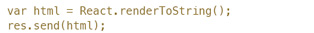 如果第二行有点眼熟,你没有猜错——这段代码发生在服务器端!是的,同样的 HelloMessage,我们不仅可以让React在前端渲染到页面,同样可以在后端直接渲染成HTML字符串,然后把它返回给前端。服务端预渲染就这么自然地发生了。