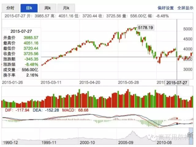 上证指数从年初的3000点半年时间涨到了5000多,6月12号达到最高点5200点,然后就急转直下,最大单日跌幅 8.48%,一路跌回4000点以下。最近一周都在3900多徘徊。
