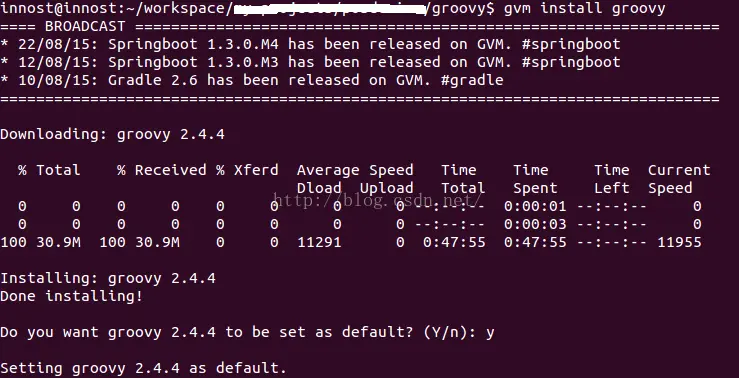 执行完最后一步,Groovy就下载并安装了。图1是安装时候的示意图