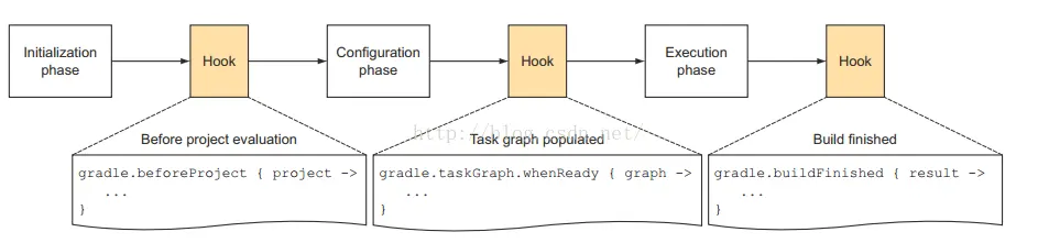 - 接着开始看Gradle。Gradle有几本书,我看过Gradle in Action。说实话,看得非常痛苦。现在想起来,Gradle其实比较简单,知道它的生命周期,知道它怎么解析脚本,知道它的API,几乎很快就能干活。而Gradle In Action一上来就很细,而且没有从API角度介绍。说个很有趣的事情,书中有个类似下面的例子